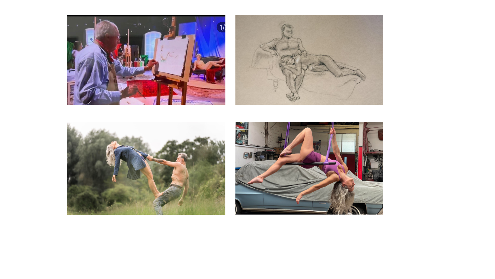 "We got on the show after seeing a social media post asking for professional life models for a tv show, Helen applied first and told me about it. I mentioned Hens With Pens in my application and sent pictures of previous life modelling classes I participated in, including one image of me posing on a ladder! That must have caught their attention as they provided a ladder for me to pose on the day."
